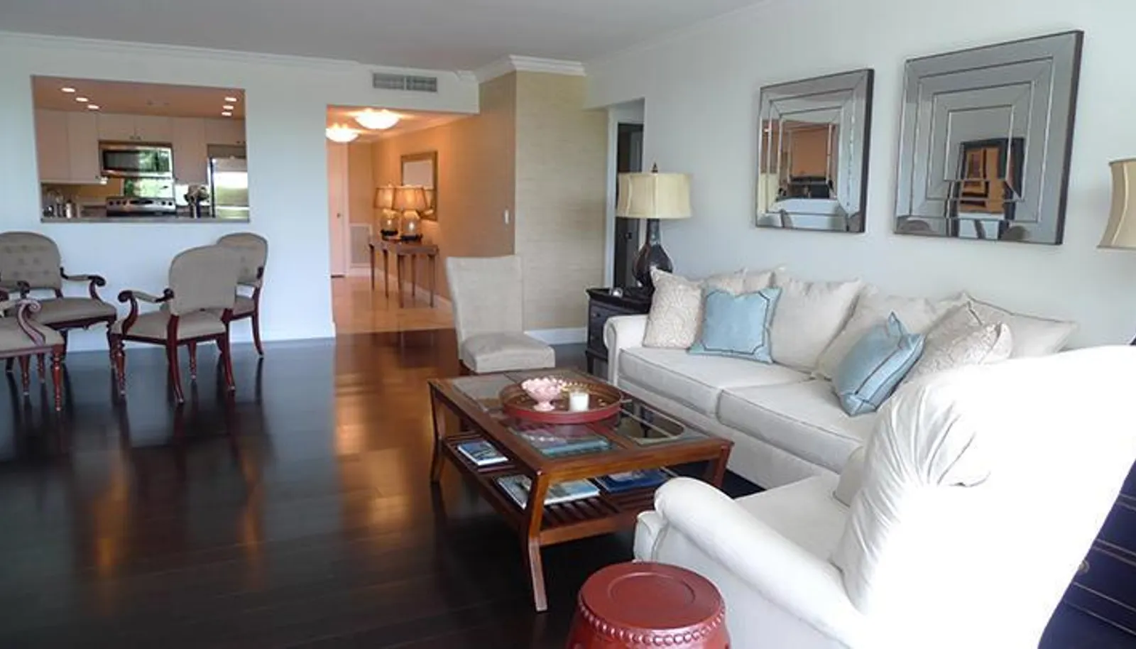 Immaculate 2 BR2BA light filled apartment with lovely wide sweeping views over the town. Granite counter top kitchen and marble baths, dark wood...